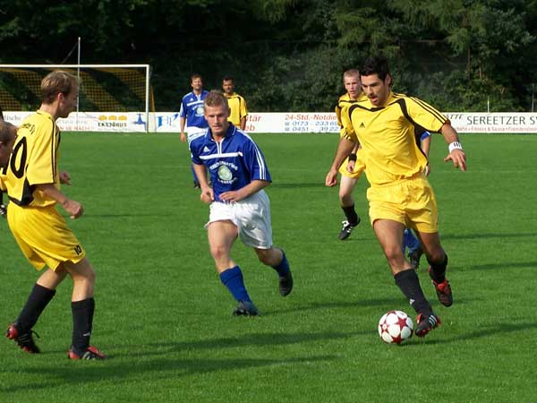 Schon vorher war jedem klar, dass Lensahn 2 kein einfacher Gegener wird. Dies bestätigte sich während des Spiels. Es stellte sich als schwierig heraus, sich viele Torchancen zu erarbeiten, so dass ein Handelfmeter in der 28.Minute, den Sven Mielke sicher verwandelte, zum 1:0 führte. Kurz vor der Halbzeit kamen auch die Lensahner einmal gefährlich vor das Sereetzer Tor und erzielten den Ausgleich. Nach der Halbzeit das gleiche Bild: Spiel in eine Richtung, Lensahn stand hinten drin, Sereetz spielt. Dann war es aber erneut Mielke, der mit einem Fernschuss für den 2:1-Endstand sorgte. Am Ende war es ein Arbeitssieg, aber was zählt sind die 3 Punkte. |