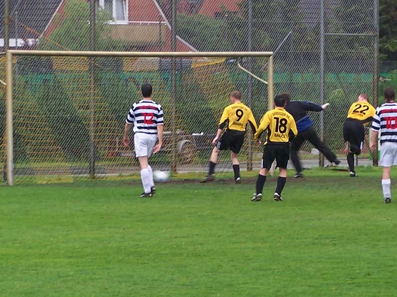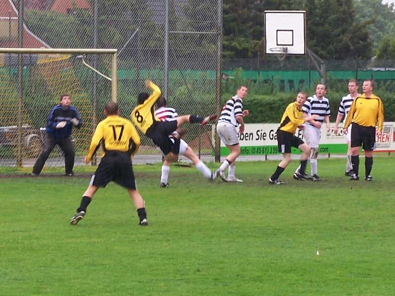 Fußball gespielt wurde an diesem Tag auch noch. Trotz Dauerregens zeigte die Truppe einmal mehr, warum sie in dieser Klasse den Titel erreicht hat. Mit einem 12:0 (6:0) wurde Putlos auf den Heimweg geschickt. Wenn ich richtig gezählt habe, taten sich besonders Florian Ramm und Markus Witossek mit jeweils 4 Treffern hervor. |